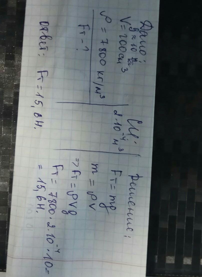 5. Чему равна сила тяжести, действующая на стальную деталь объемом 200 см.