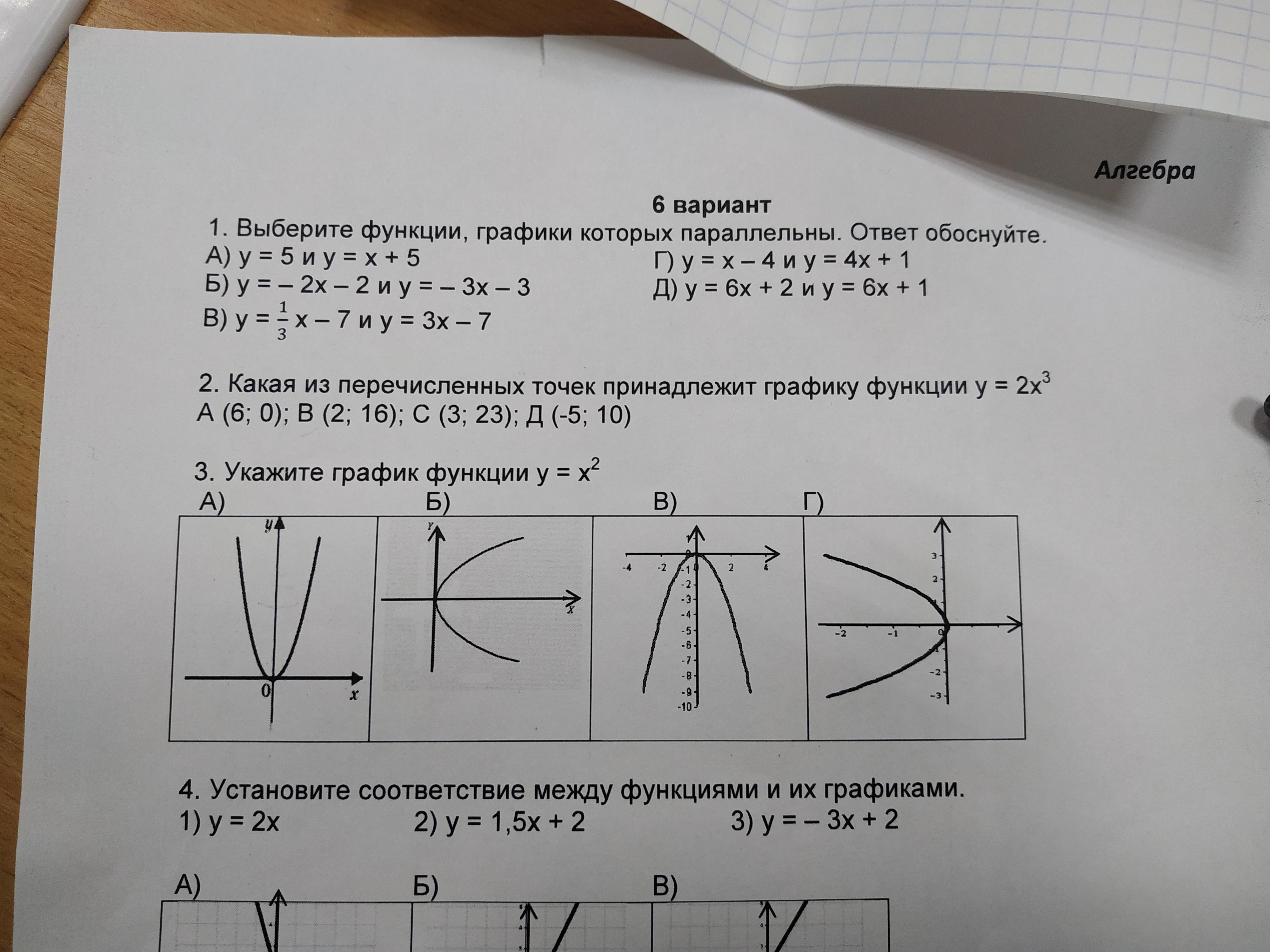 Выберите функции, графики которых парарельны ответ обоснуйте 15 баллов срочняк помгите и остальное
