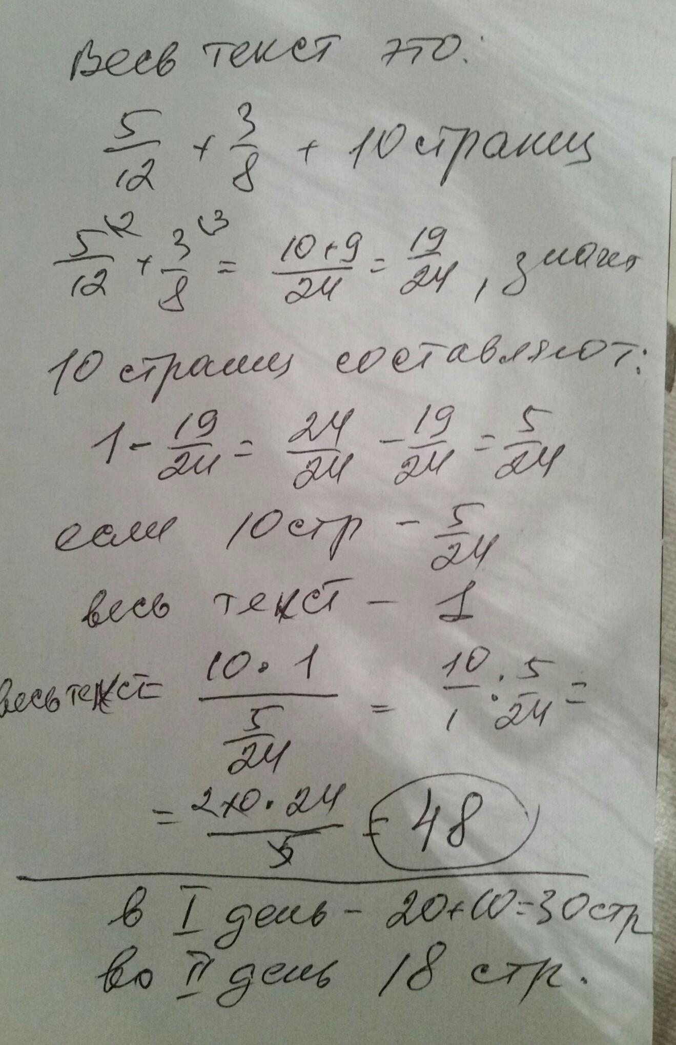 3) 10 : 5/24 = 10 : 5 * 24 = 2 * 24 = 48 страниц всего