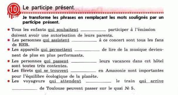 Souhaitant; assistant; permettant; passant; se trouvant; attendant, arrivant...