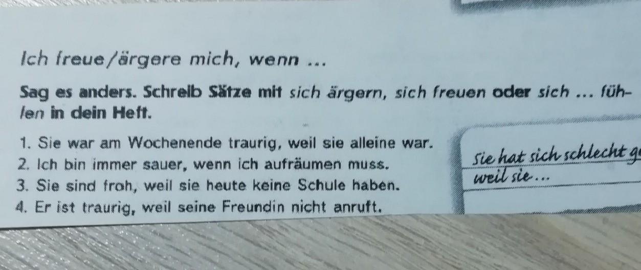 1. Sie hat sich nicht wohl gefühlt, weil sie alleine war.