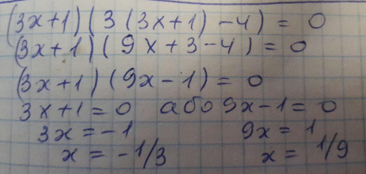 По-моему, удобнее разложить на множители и вынести (3х+1). Но и так все правильно