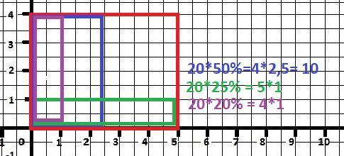 Начерти прямоугольник дл 5 см и шир. 4 см.начерти еще 3прямоуг. ,площади которых составляют 50 %. 25 % ,20 % от площади первого прямоугольника.