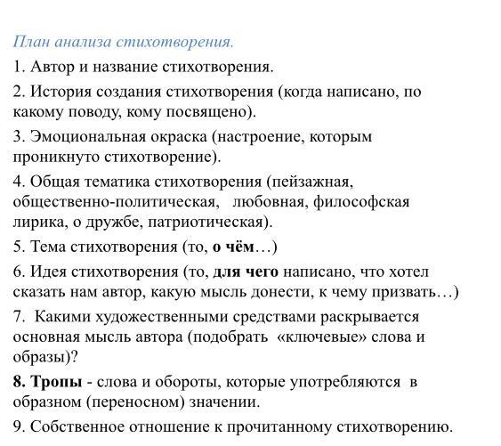 9.В стихотворении Лермонтова "Листок" можно, на мой взгляд, выделить два основных мотива. Во-первых, не следует искать счастья на чужбине - мы нужны и дороги там, где родились. Во-вторых, для полной сил молодости ничего не значит мудрость стариков, она видит лишь их внешнюю неприглядность. Листок дуба, оторвавшись от ветки, долго странствует по свету, и, наконец, уже засохший, долетает до прекрасной чинары. Но южной красавице не интересны его рассказы, не хочет она знать и о дальних странах. Ласкаемая солнцем, чинара наслаждается сегодняшним днём, не думая ни о прошлом, ни о будущем.