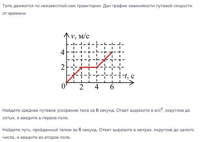 Путь, пройденный телом за указанное время равен площади между графиком скорости и осью времени на отрезке 0÷6 с, т.е.