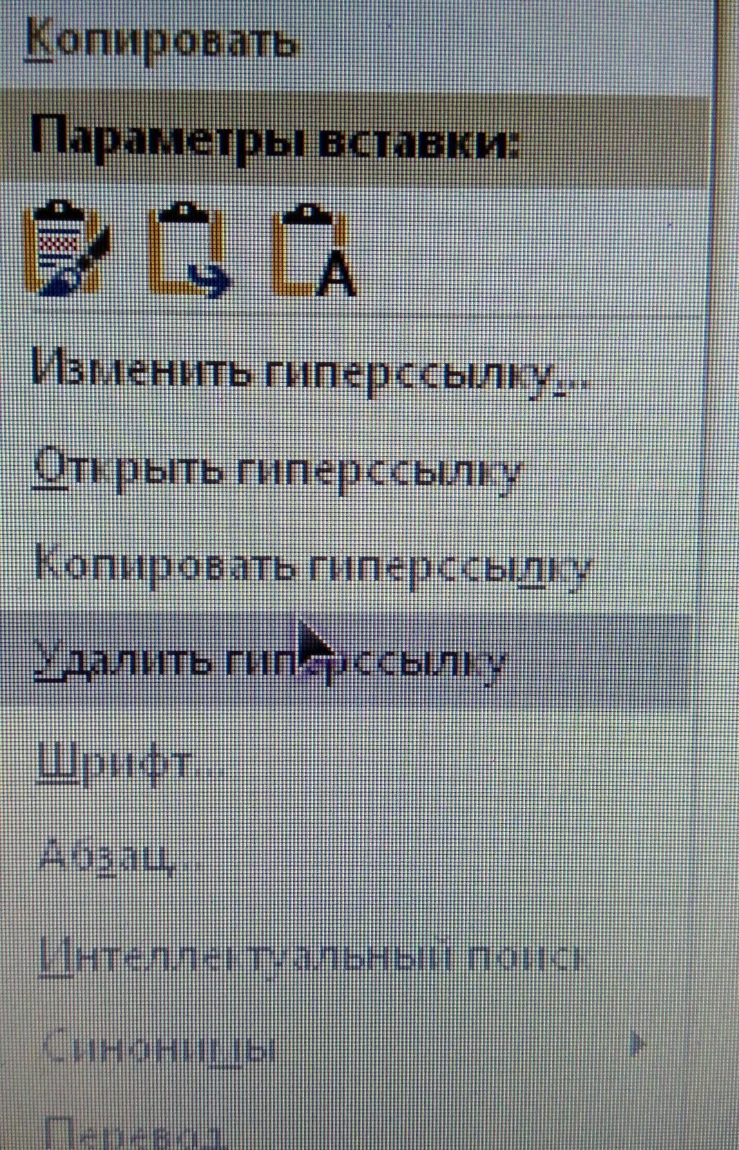 Жмёж правой кнопкой мыши на гиперссылку, потом "удалить гиперссылку"