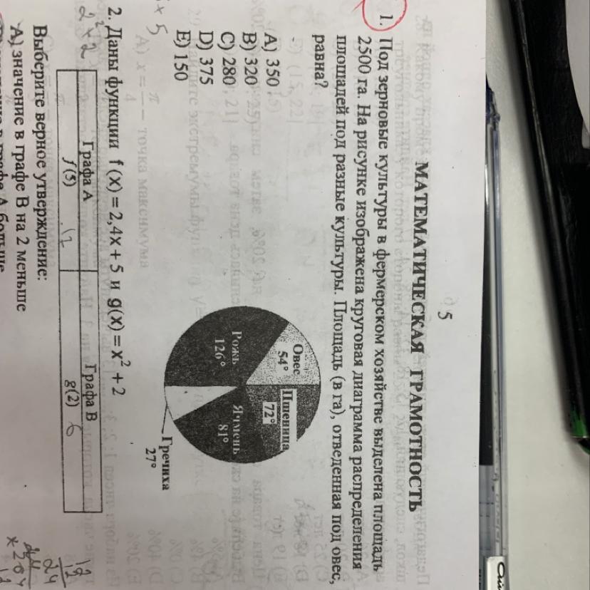 1.54*100/360=15(%) занимает овёс от общей площади поля