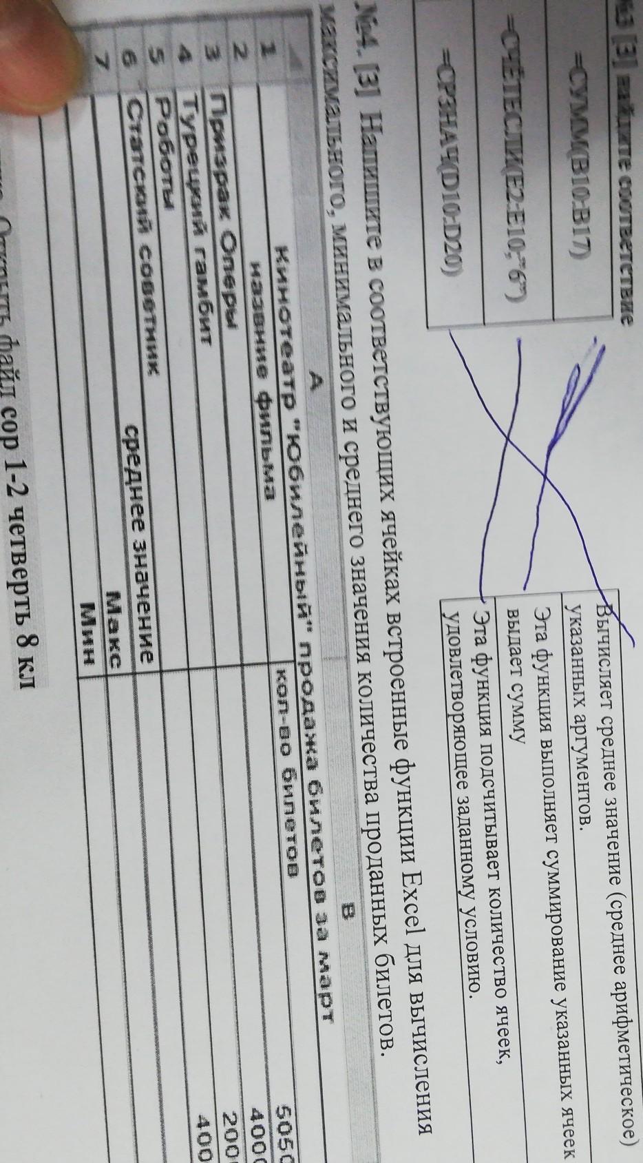Напишите соответствующих ячейках ячейках встроенные функции Excel для вычисления максимального минимального и среднего значения количество проданных билетов