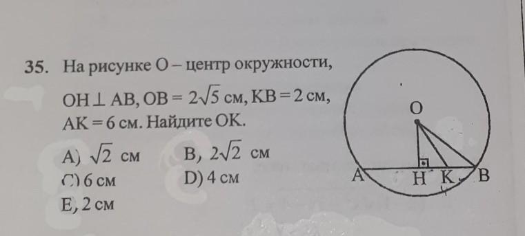 5) рассм. Δ ОНК; ОК=√(ОН²+НК²)=√(4+4)=√2*4=2√2 см - В)
