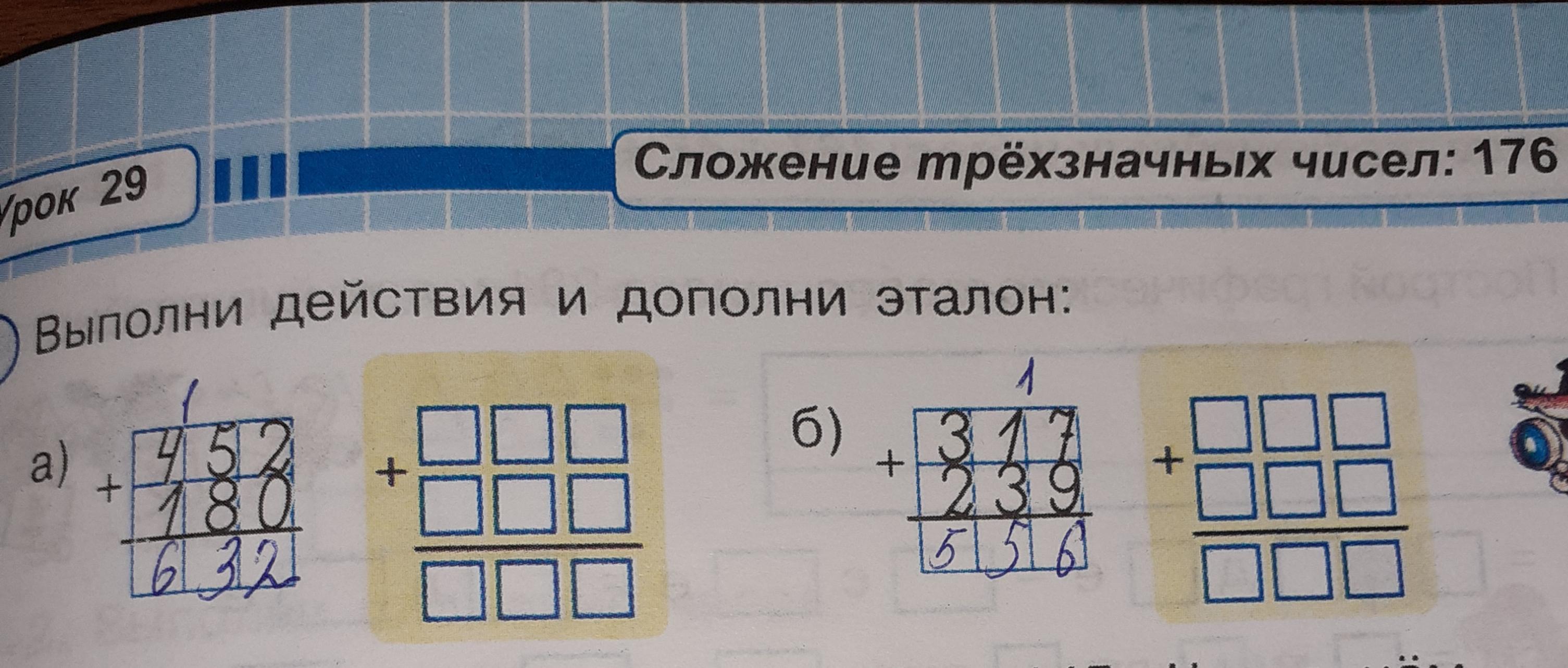 Проще говоря, тебе нужно написали самому пример из трехзначных чисел. То есть, не вписывать в 3 клетки только 2 цифры