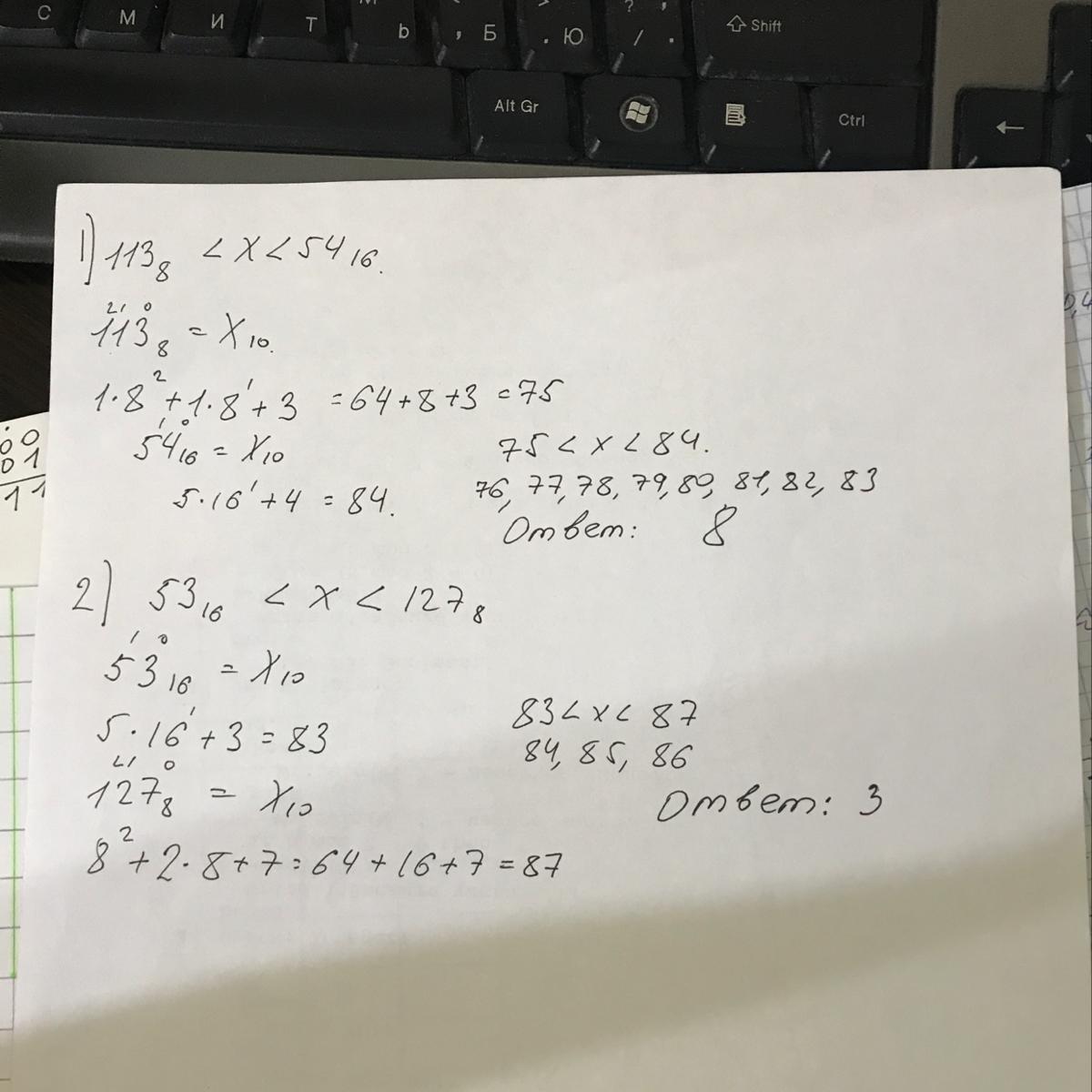 Сколько натуральных чисел расположено в интервале 53(16) < x < 127(8)