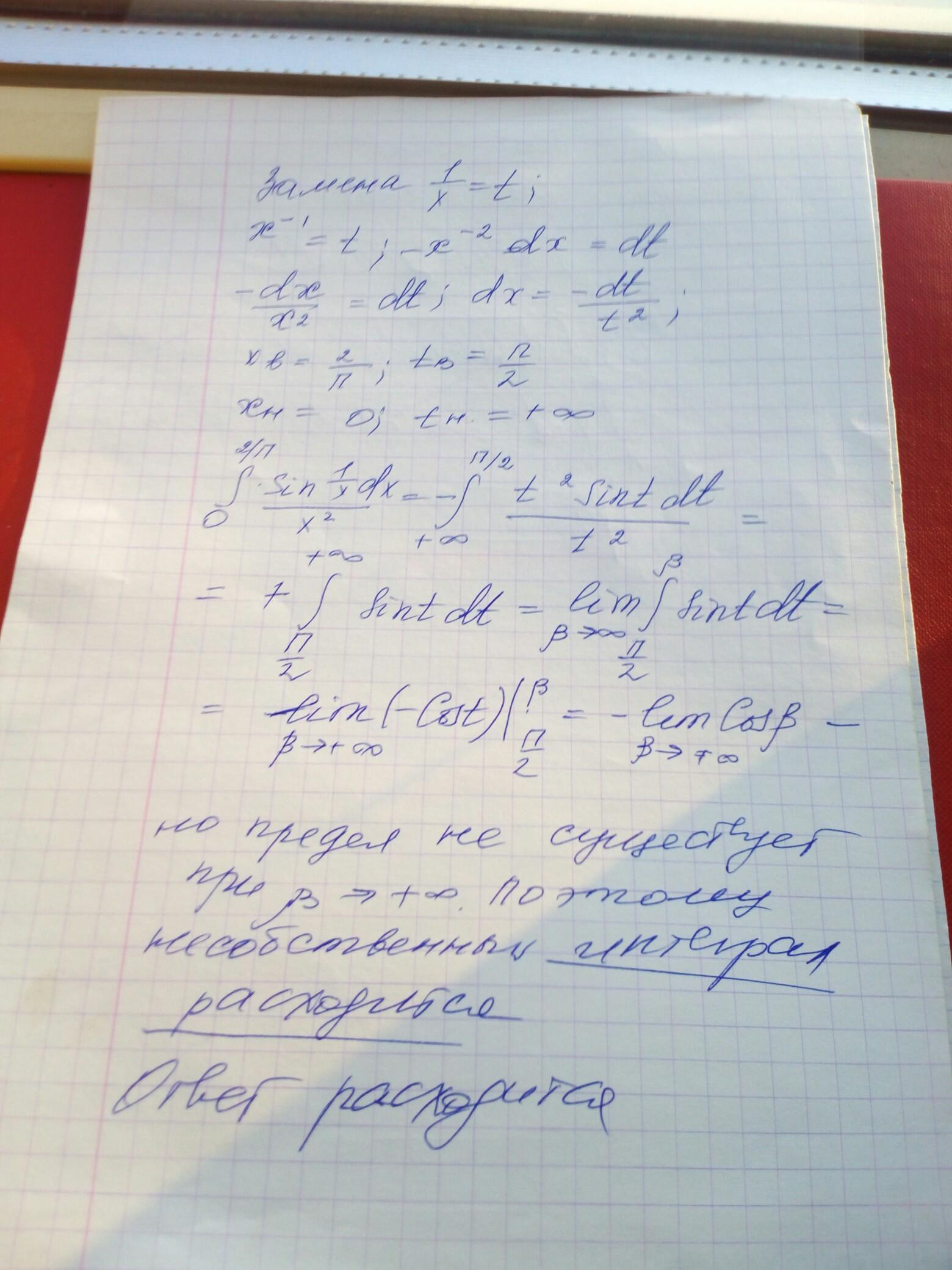 посмотрите, там же после замены нижний предел интегрирования был равен + беск, я поменял пределы и поэтому минус ушел. вроде все верно