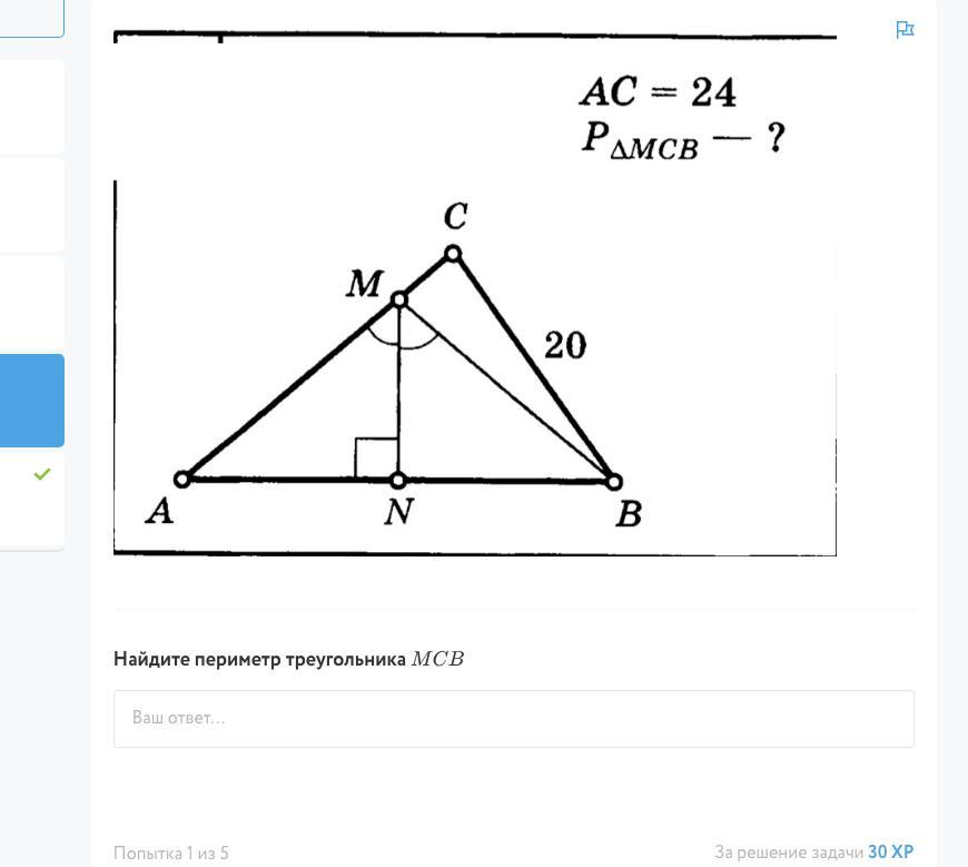 Раз так , то МВ + МС = АМ + МС = 24 см
