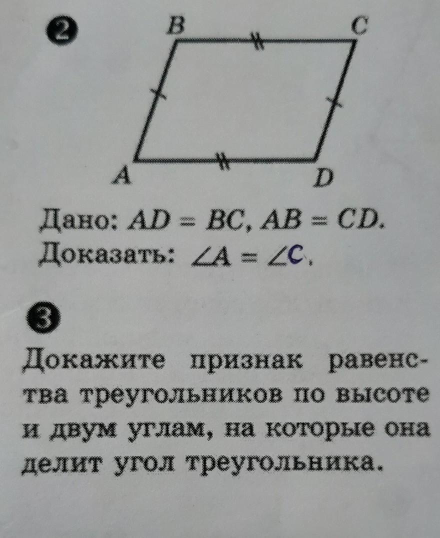 2. Дано: AD=BC, AB=CD Док-ть: угол А=углу С