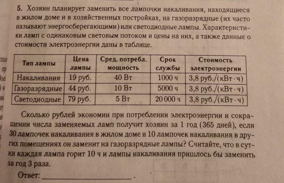 Объяснение: Считаем сколько надо заплатить за лампочки в год.
