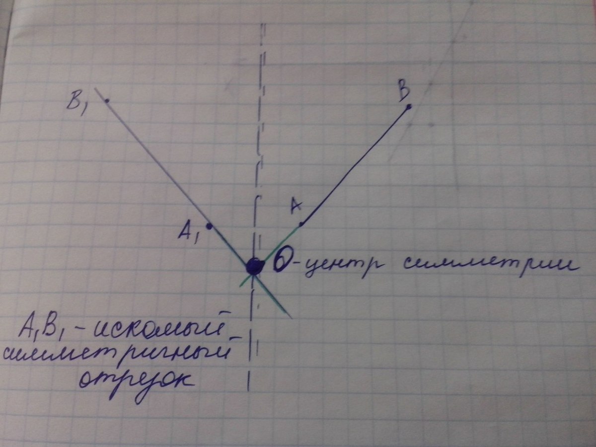Постройте отрезок, симметричный данному отрезку AB, если центр симметрии лежит на прямой AB вне отрезка AB. Помогите решить..))