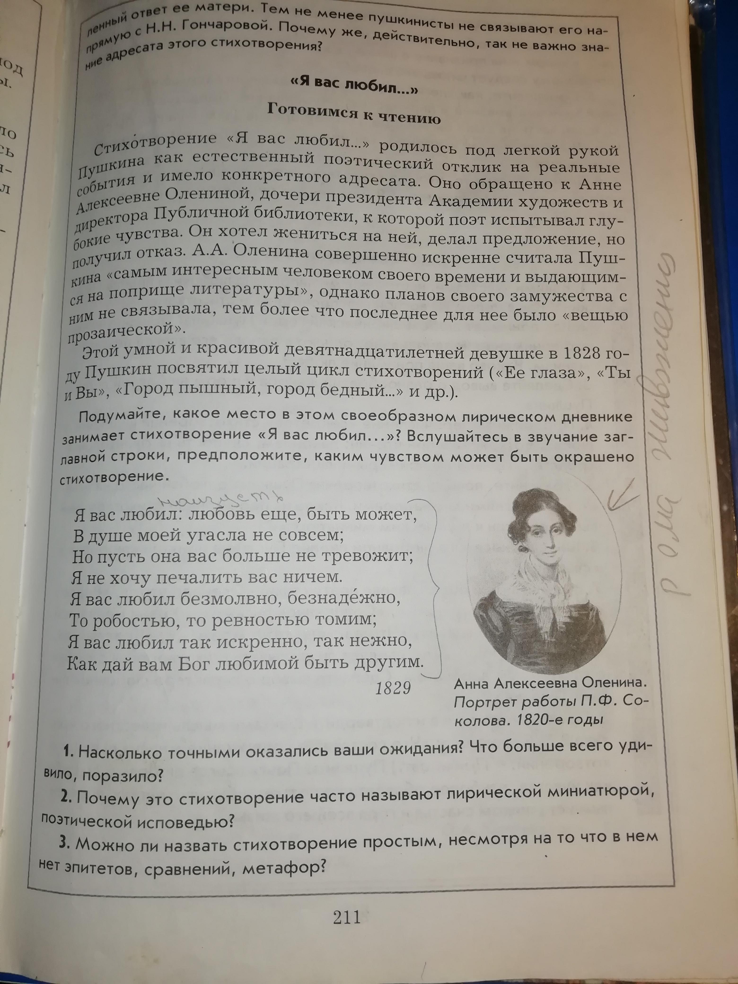 6)Да, я считаю, что это-прощание с любимой. Пушкинское расставание пронизано глубоким чувством гуманизма. Может быть не взаимная любовь.