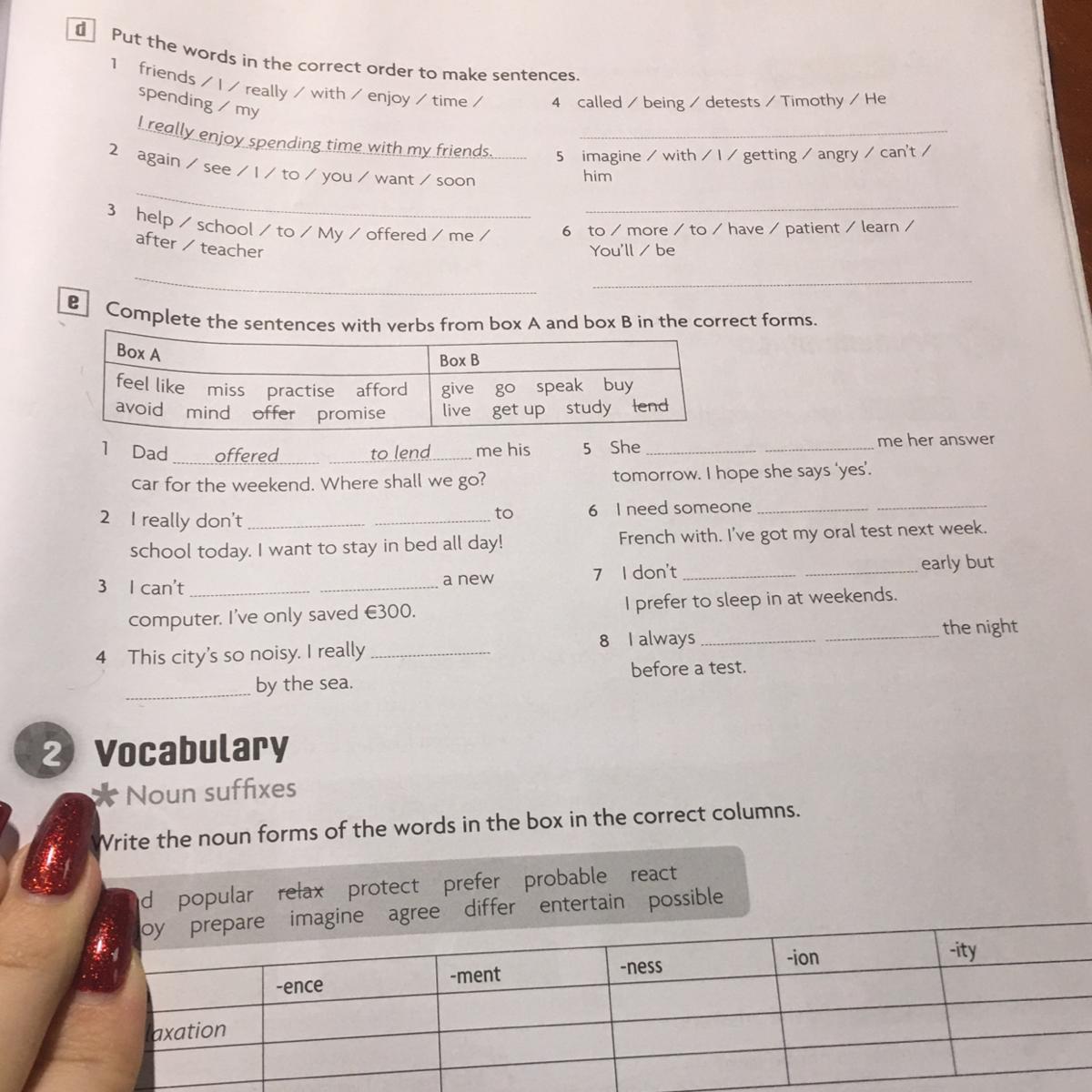 2 I want to see you again soon 3 My teacher offered to help me after school 4 He detests being called Timothy 5 I can’t imagine getting angry with him 6 You’ll have to learn to be more patient