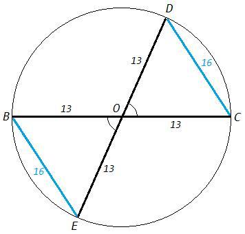 OB=OC=OD=OE =26/2 =13 (радиусы)