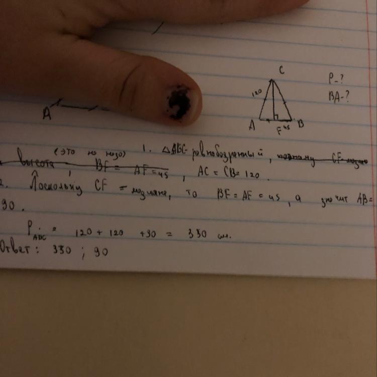 1. ABC- равнобедренный , поэтому AC=CB=120