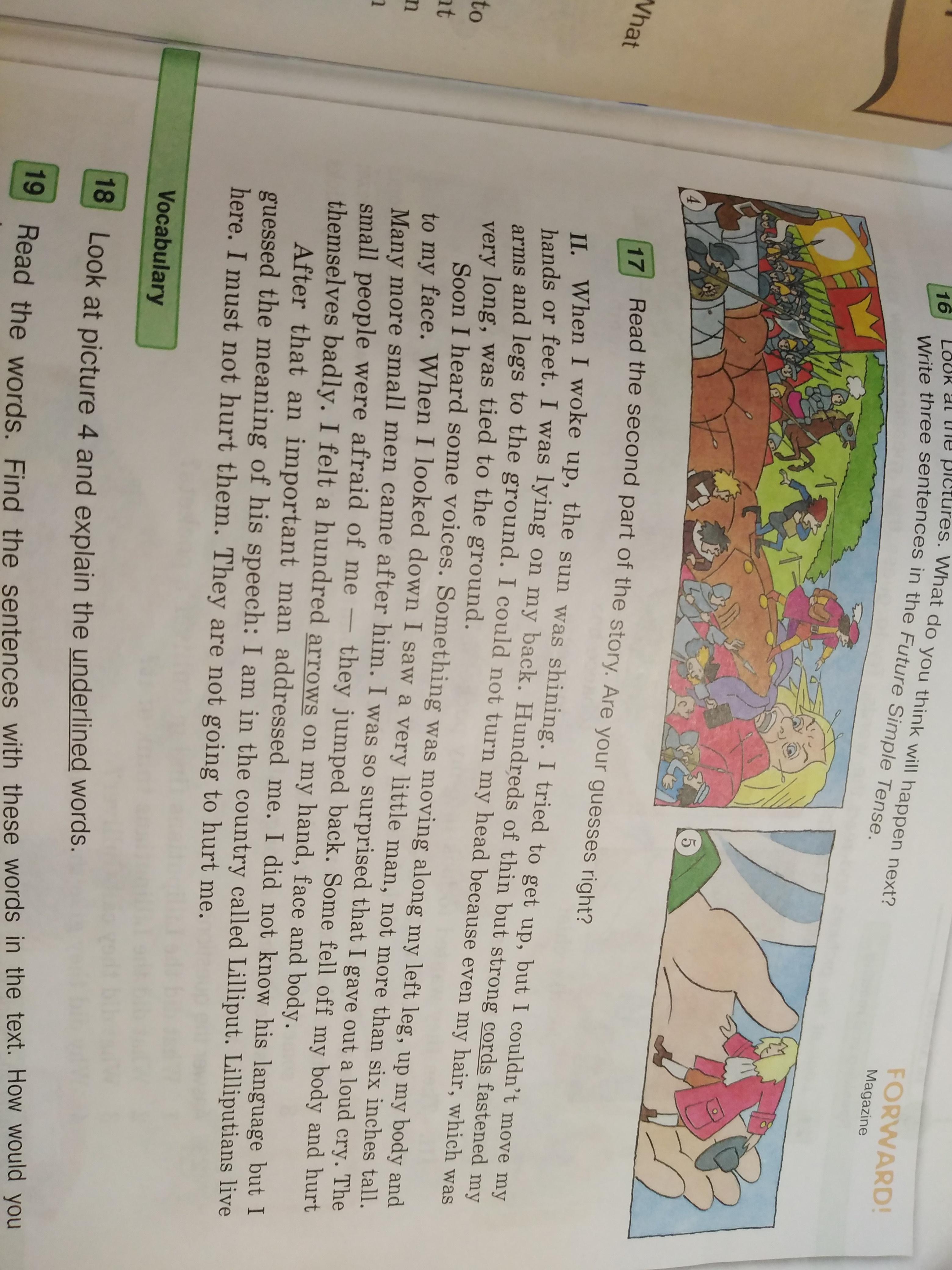 После этого возможно важный человек обратился ко мне. Я не знал их языка, но Я угадал смысл его речи: Я из страны под названием Лилипутия. Лилипутиансы живут здесь. Я не должен причинять им боль. Они не собираються делать мне больно.