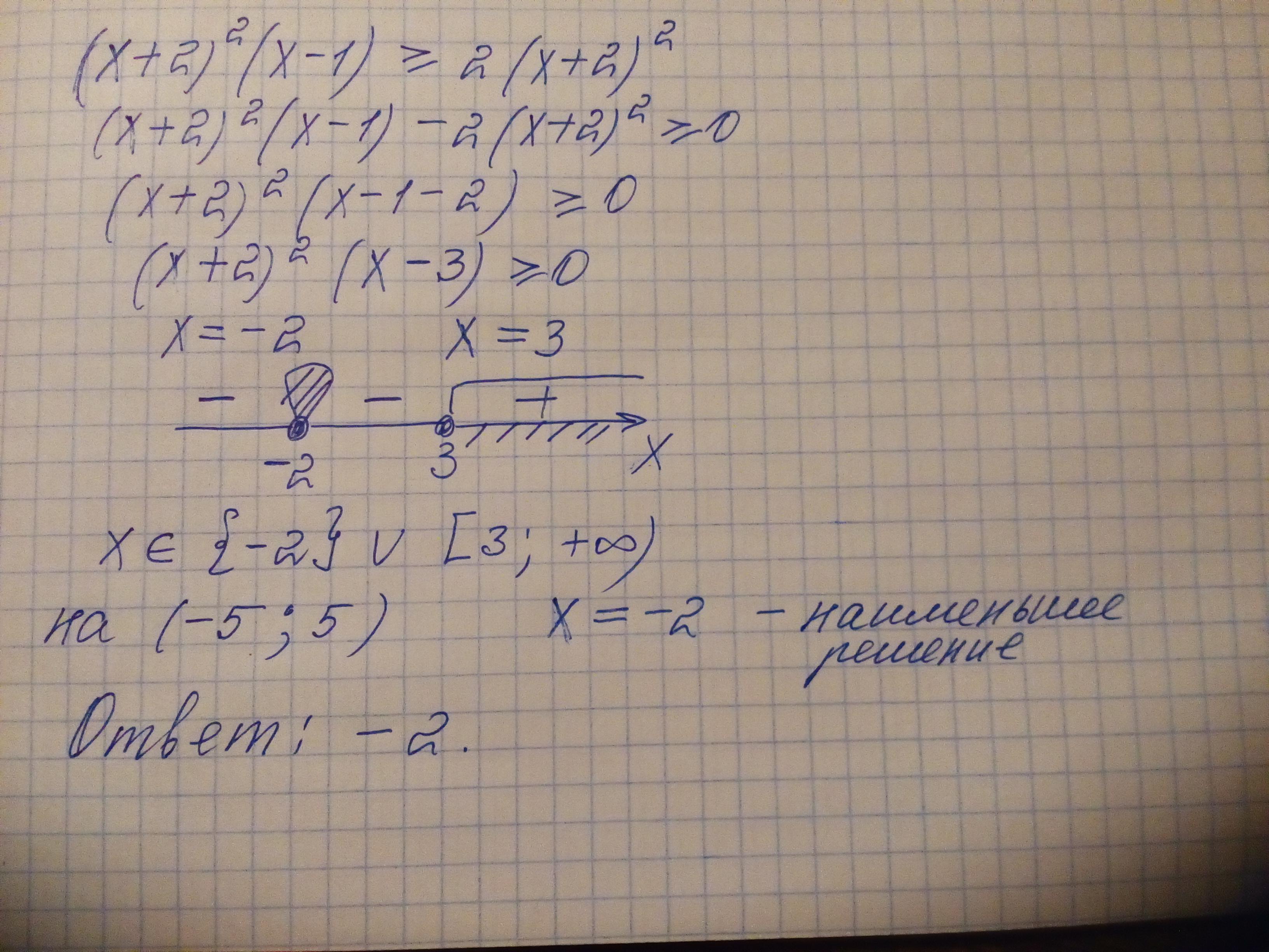 Заметим ,что x=-2 - решение ,так как неравенство не строгое и так как у нас чётная степень ,то мы можем смело поделить на этот множитель
