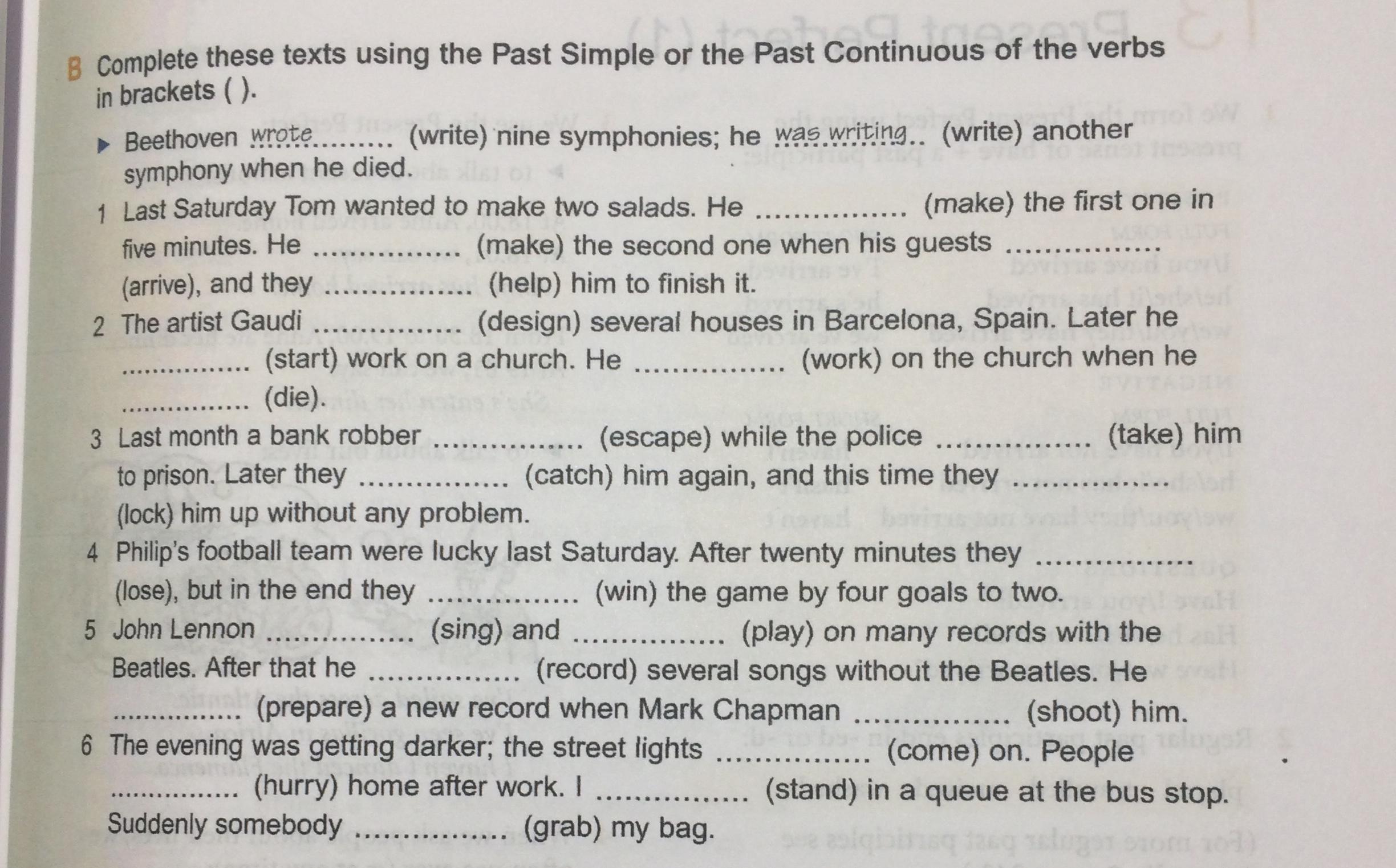 Во-вторых: у этого времени есть свои индикаторы, по которым можно отличить, когда ставится это время: at 7 o'clock, from...till - ( с ... до ), at this time, all day long и его синоним = the whole day, while.