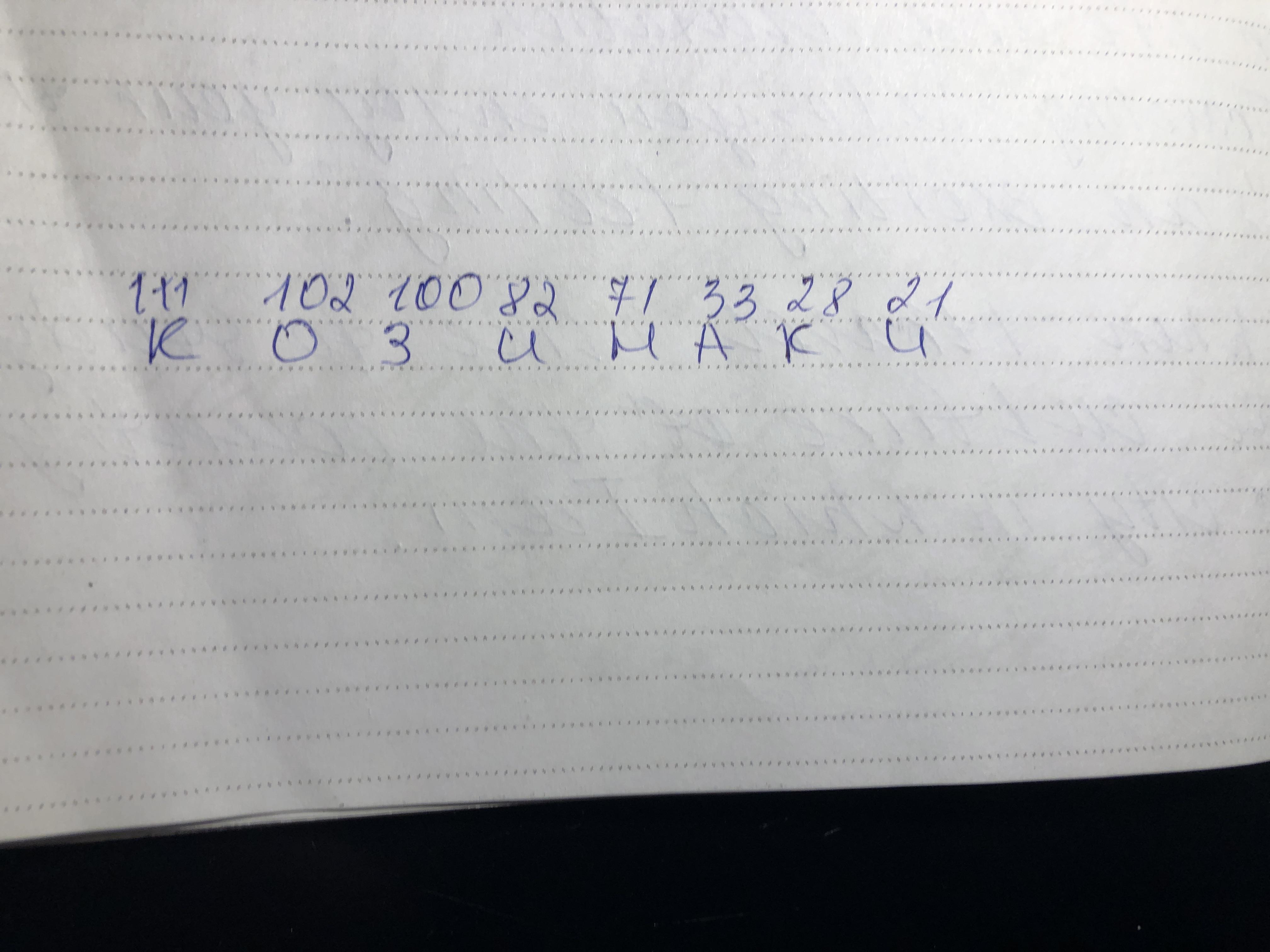 Объяснение: От самого наибольшего числа ,до наименьшего записываешь буквы