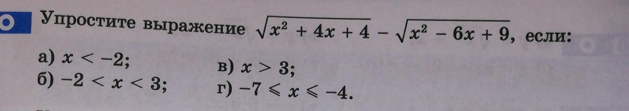 sqrt(x^2 + 4x + 4) - sqrt(x^2 - 6x + 9) = sqrt((x + 2)^2) - sqrt((x - 3)^2) = |x + 2| - |x - 3|