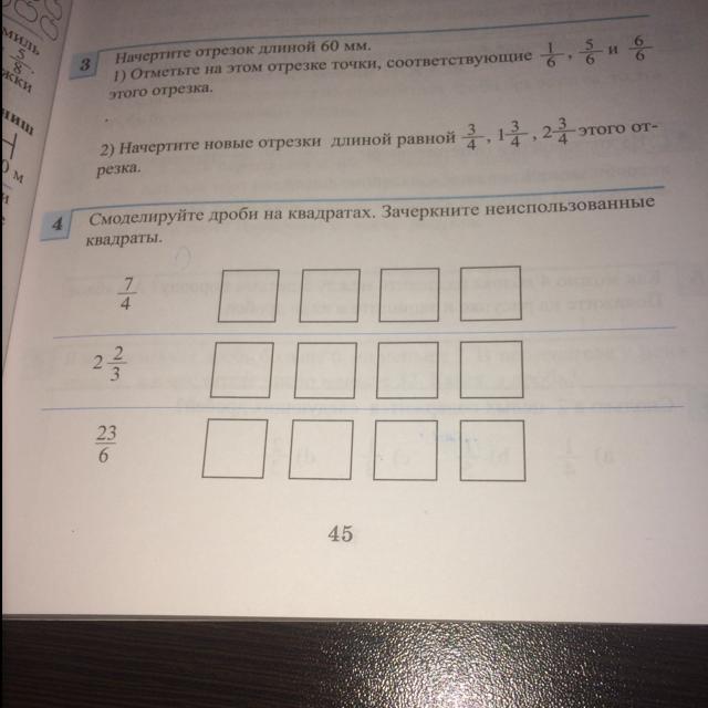 3. 23/6=3 5/6, то есть использовали все 4 квадрата