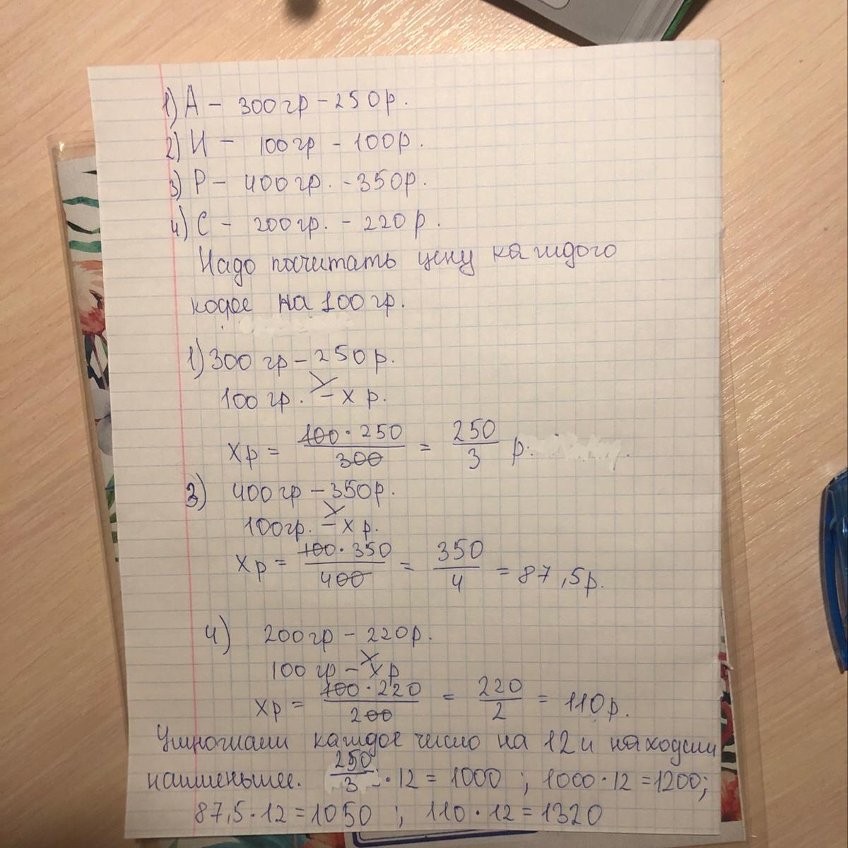 Самое дешевое стоит 1000 рублей, значит самый дешёвый вариант это кофе «Арабика»