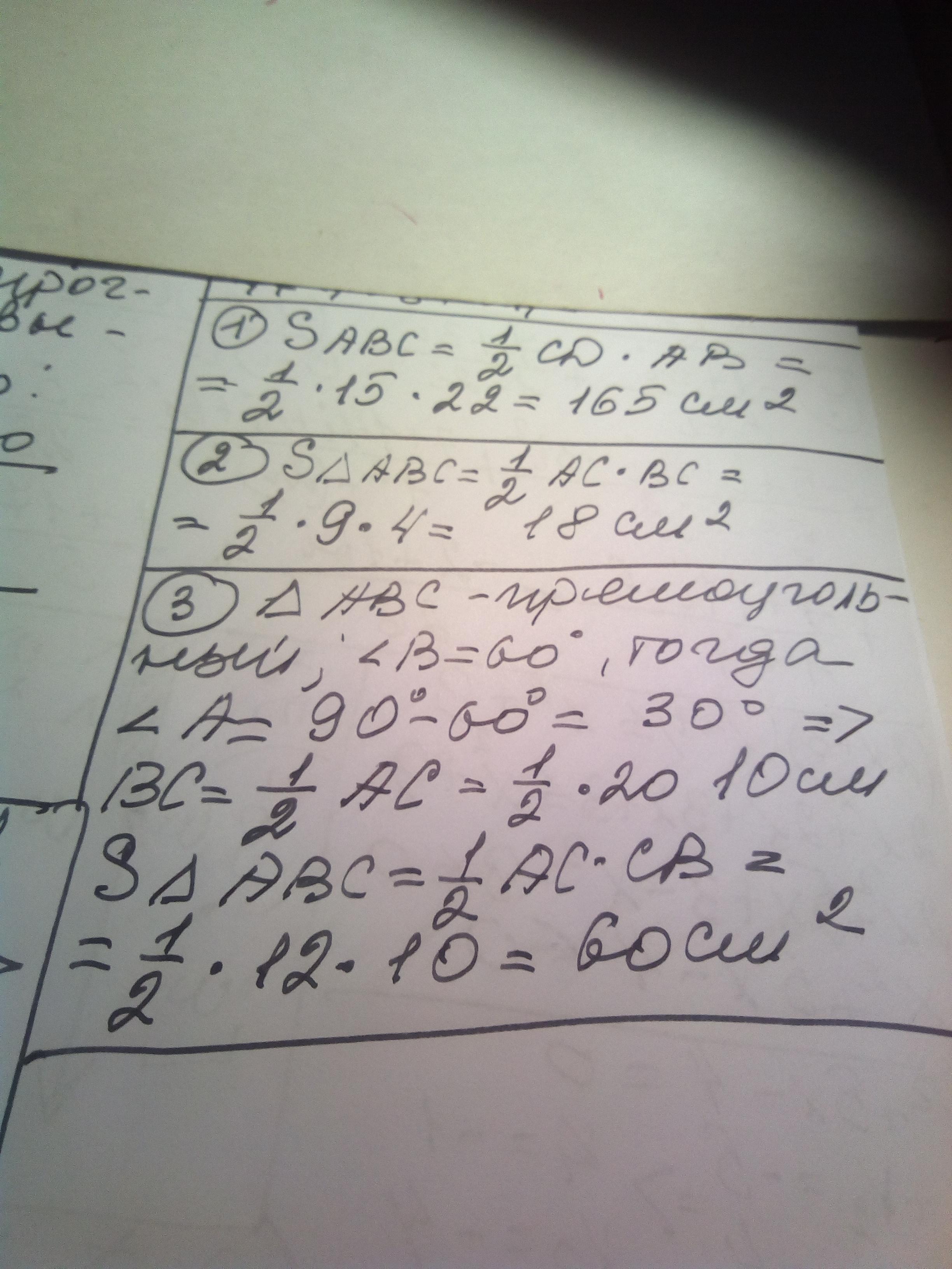 1)S=(AB*CD)/2=(15*22)/2=15*11=165