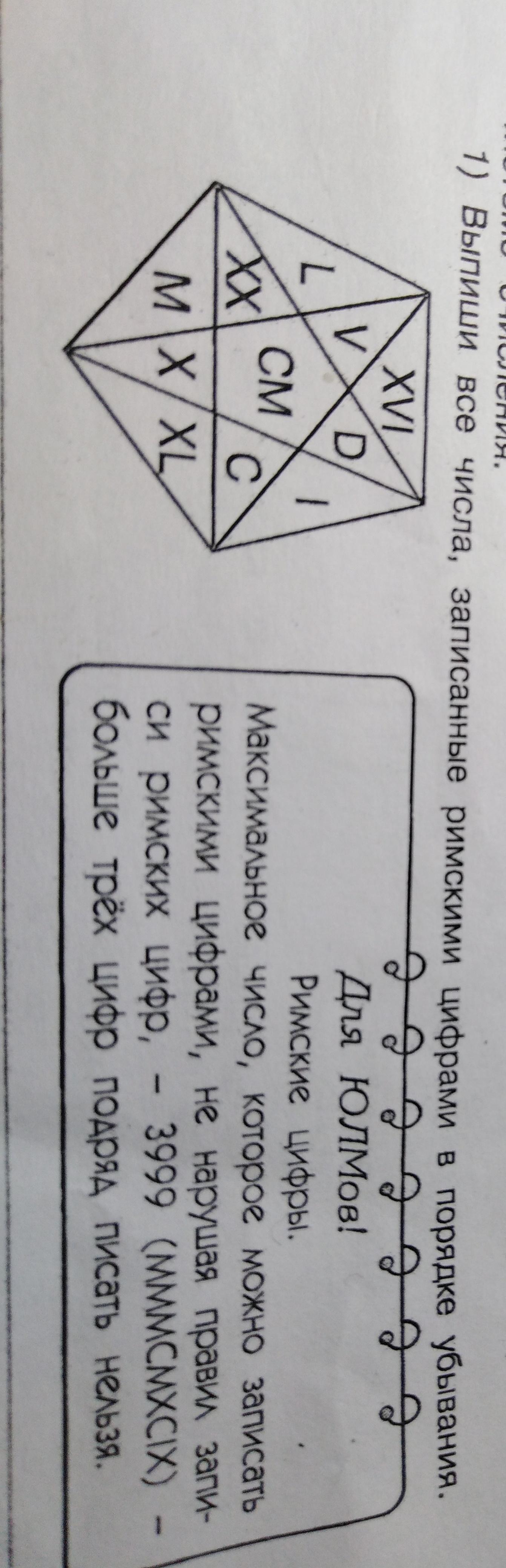 M; CM; D; C; L; XL; XX; XVI; X; V; I