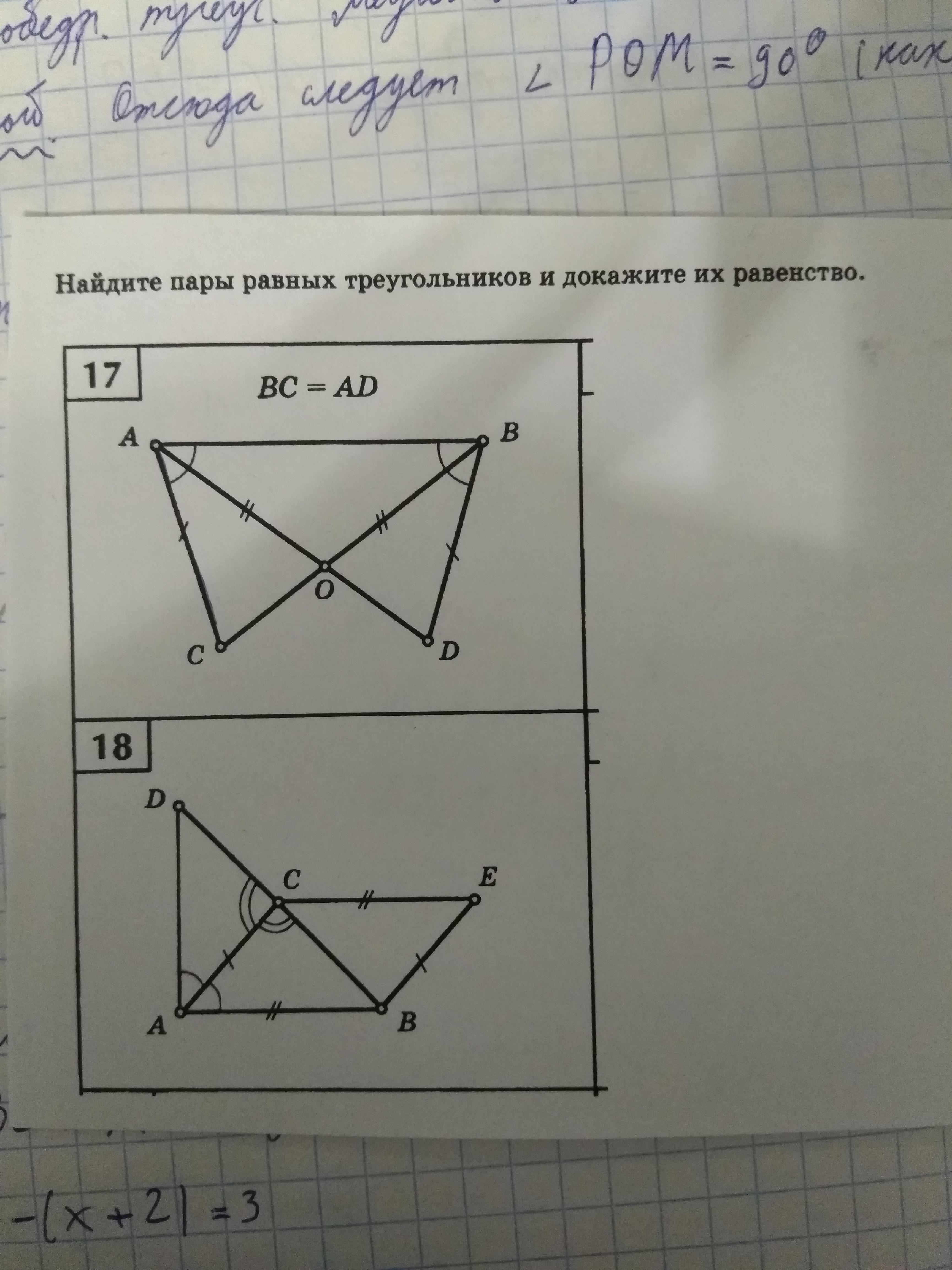 17) треугольник АСО=треугольнику ВDО(по двум сторонам и углу между ними), т.е. АС =ВD, АО=ВО, угол САО=углу DВО