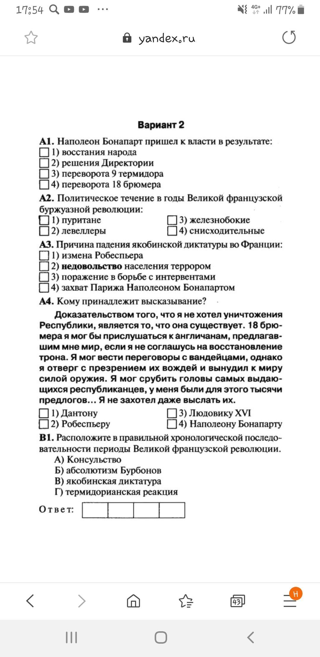 А1 4) А2 4) А3 -2) А4 4) В1 Б) В) Г) А)