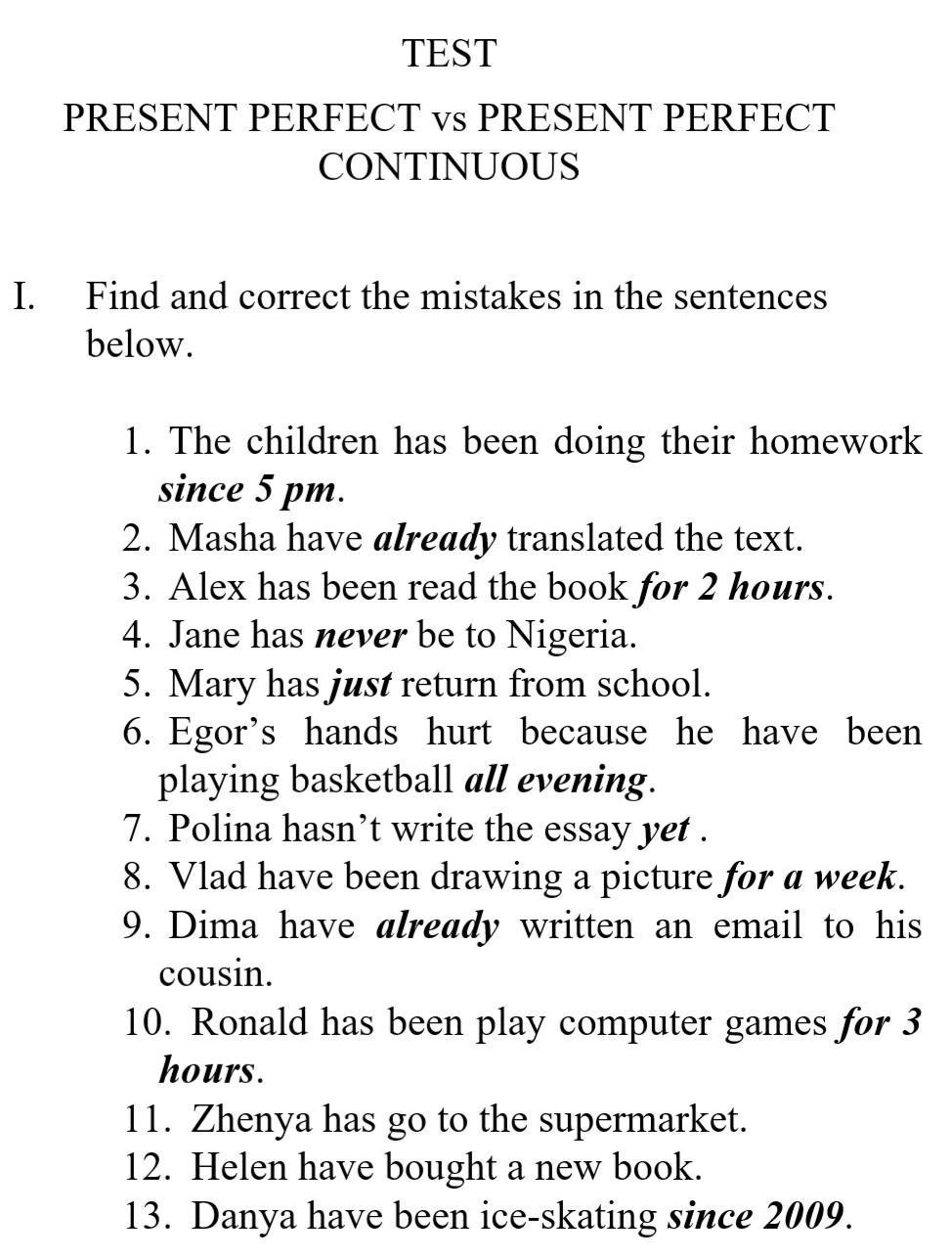 6)Egor’s hands hurt because he HAS been playing basketball all evening