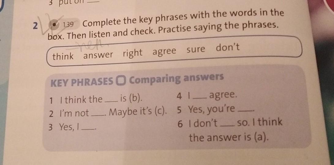 Закончи фразы словами в рамке. Послушай текст и проверь. Попрактикуйся в говорении этих фраз.