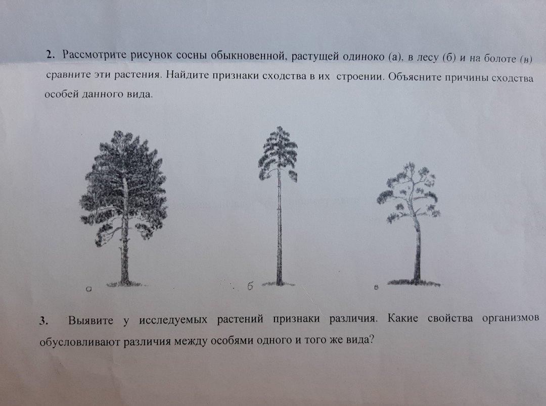 На болоте условия менее благоприятны, чем в лесу, поэтому крона у болотной сосны беднее.