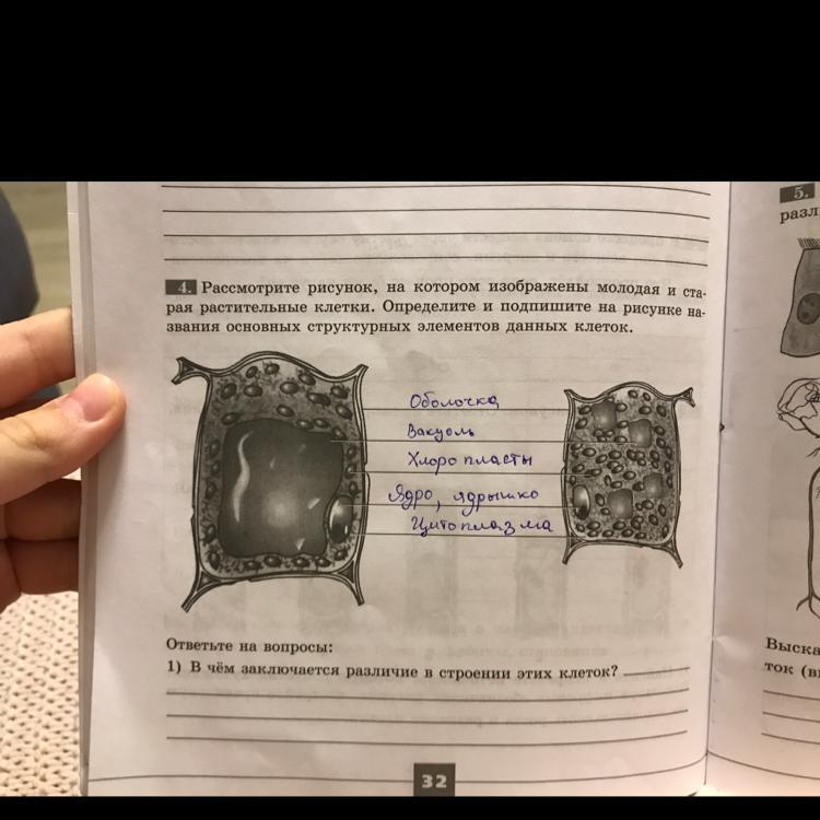 Различие в строении этих клеток заключается в том, что у клетки слева одна огромная вакуоль, а у клетки справа несколько маленьких.