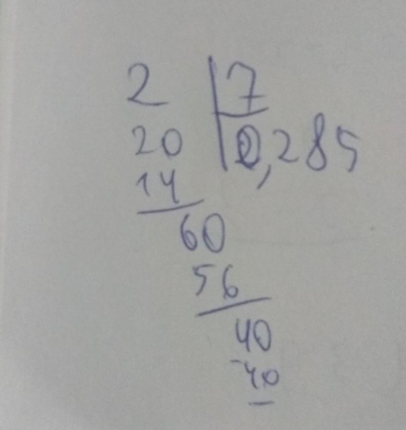 Ділимо 2 на 7 у стовпчик та отримуємо 0,285 округлюємо та виходить 0.3. Відповідь 0.3