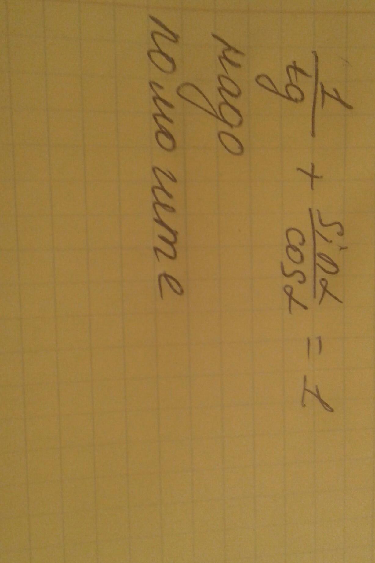 1/tg+tg^2/tg=1(умножили на тангенс 2 число)