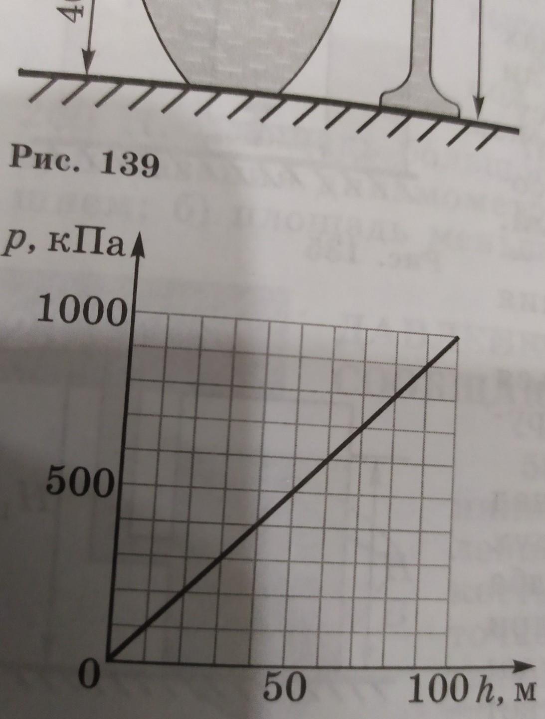 определите по графику глубину погружения тела в озеро, соответствующую давлению воды 100, 300 и 500 кПа