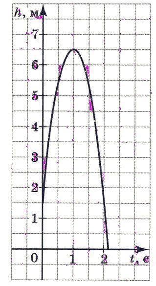 Мяч подбросили вертикально вверх с высоты 1.5 метра, придав ему начальную скорость 10 м/с. по графику изменения высоты его полёта в зависимости от времени движения ответьте на вопросы: