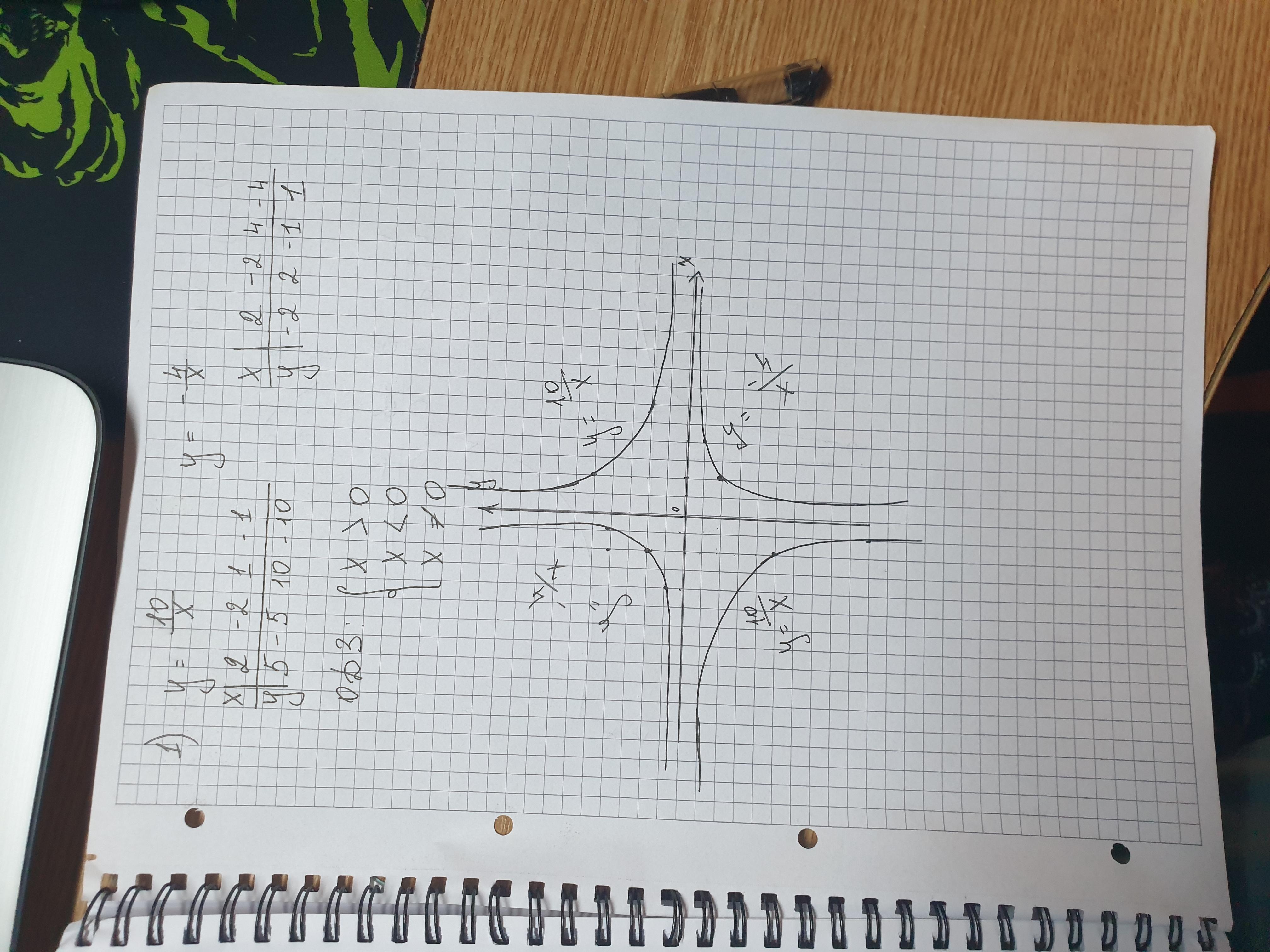 Короче, ищешь ОДЗ (х!=0, т.к. знаменатель не ровняется нулю) и чертишь табличку. берешь любые иксы и подставляешь. из этого находишь игрики и рисуешь