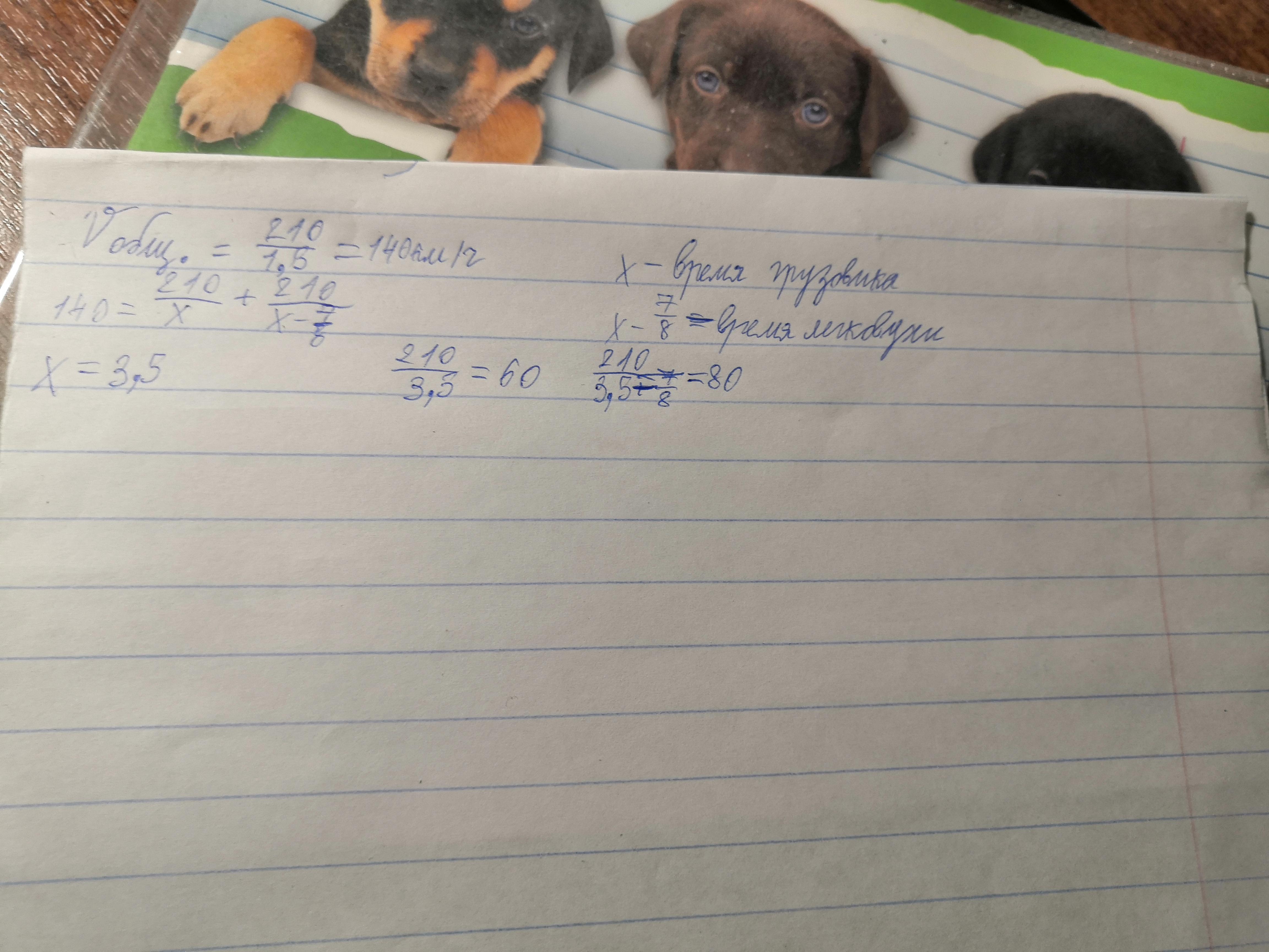 автомобили, которые встретились через 1,5 ч. Найдите скорость каждого автомобиля, если грузовик потратил на весь путь на 7/8