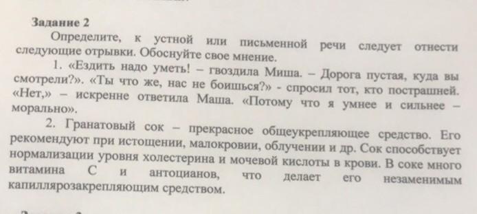 Ответ: 1:устное, 2-ое:письменное
