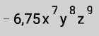 Ответ: откроем скобки 0,25*x^4*y^2*z^6*(-27)*x^3*y^6*z^3=-6,75*x^7*y^8*z^9.
