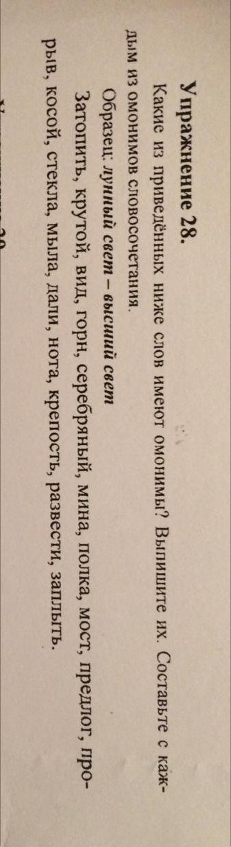 Затопить, крутой, вид, горн, серебряный, мина, полка, мост предлог, прорыв, косой, стёкла, мыло, дали, нота, крепость, развести, заплыть.