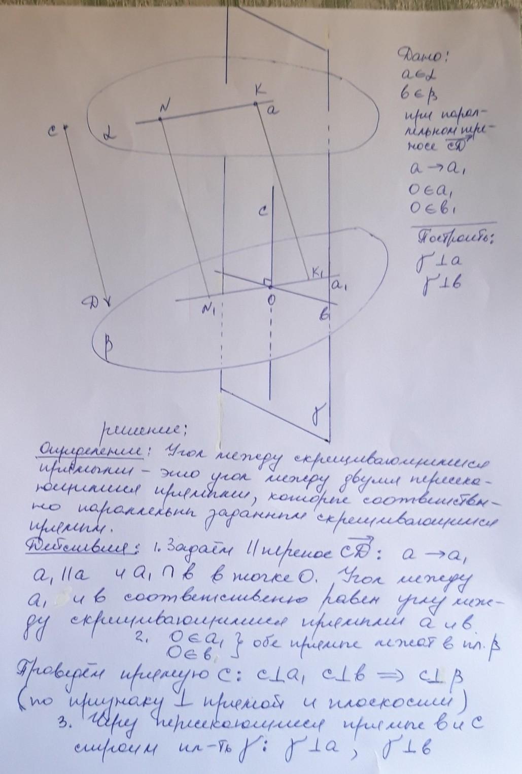 Построение плоскости , перпендикулярной скрещивающимся прямым.