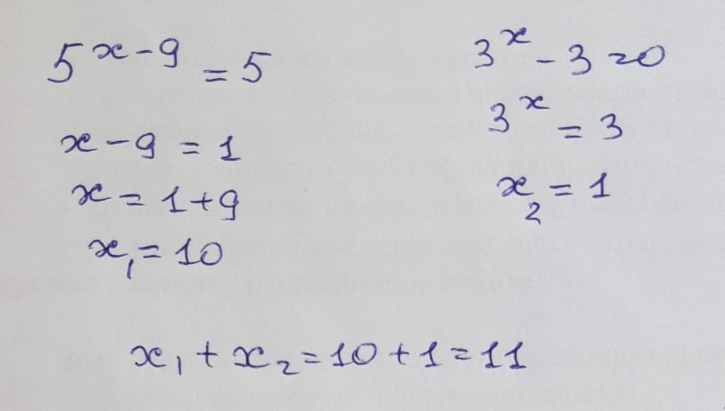 Объяснение:5^(x-9)=5^1 => x-9=1 x1=10